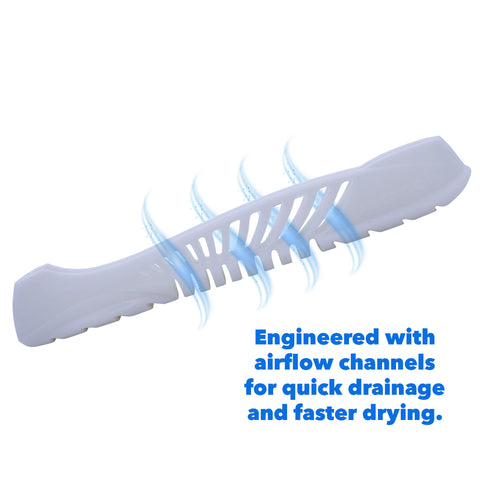 - A wide base provides stability while walking off the ice. Airflow channels allow for quick drainage and faster drying after figure skating.