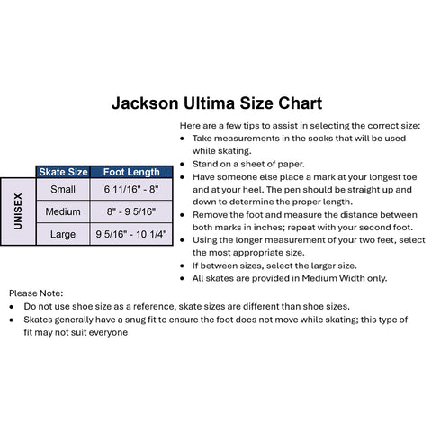 Our Sizing Chart for Length is provided as a guideline only and should not replace proper fitting completed by an authorized Jackson Ultima Retailer.